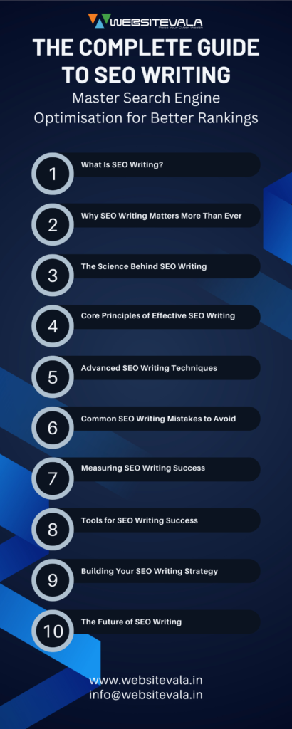 Partner with Websitevala and harness the power of expert SEO writing to boost your rankings, engage your audience, and grow your organic traffic—strategically and sustainably.